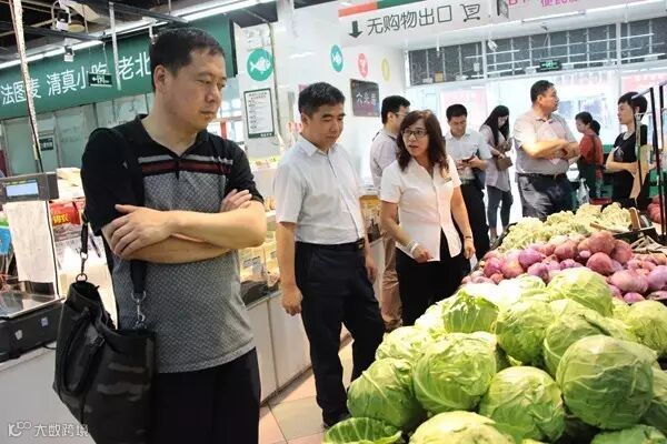 8月17日,黑龙江省齐齐哈尔市富拉尔基区委副书记、区长常兴海,带领黑龙江省有机绿色食品龙头企业代表一行到访东单菜市场光明楼店,北京市商务委电子商务处处长卢慧玲,北京悠惠易购电子商务有限公司总经理田文奇陪同。
