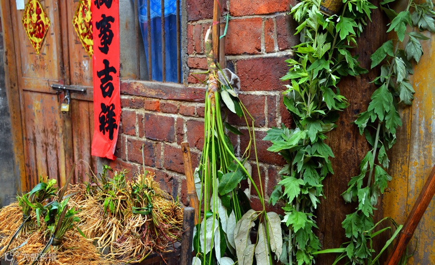 艾、菖蒲和蒜被称为“端午三友”。南北朝时,端午又称为“沐兰节”,荆楚一带有采艾的习俗。采艾要在鸡未鸣以前就出发挑选最具人形的艾草带回去挂在门上,有的还将艾草扎成虎形,再粘贴艾叶於其上。艾与菖蒲中含有芳香油,它们和蒜一样都有杀菌作用。