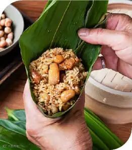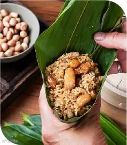 粽,即“粽籺”,俗称粽子,主要材料是糯米、馅料,用箬叶(或柊叶)包裹而成,形状多样,有尖角状、四角状等。粽子由来久远,最初是用来是祭祀祖先神灵的贡品。传入北方后,用黍米(北方产黍)做粽,称“角黍”。由于各地饮食习惯的不同,粽形成了南北风味;从口味上分,粽子有咸粽和甜粽两大类。端午食粽的风俗,千百年来在中国盛行不衰,已成了中华民族影响最大、覆盖面最广的民间饮食习俗之一,而且流传到朝鲜、日本及东南亚诸国。