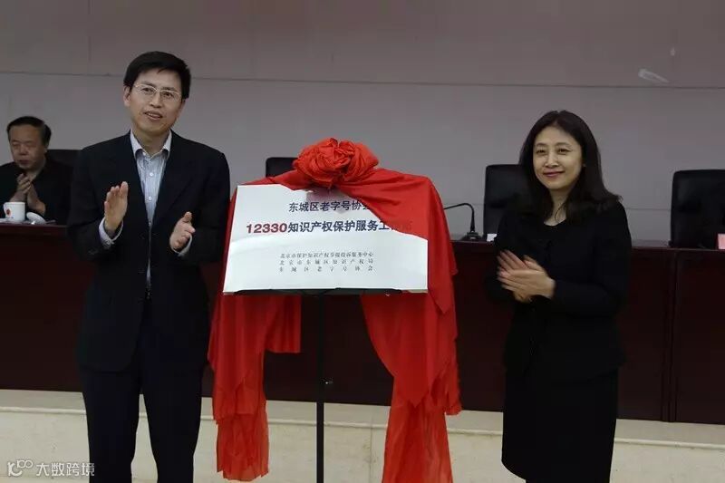 随后,北京市知识产权局副局长朱建红、东城区副区长颜华共同为工作站揭牌。正式宣告了东城区老字号协会12330工作站的成功建立。