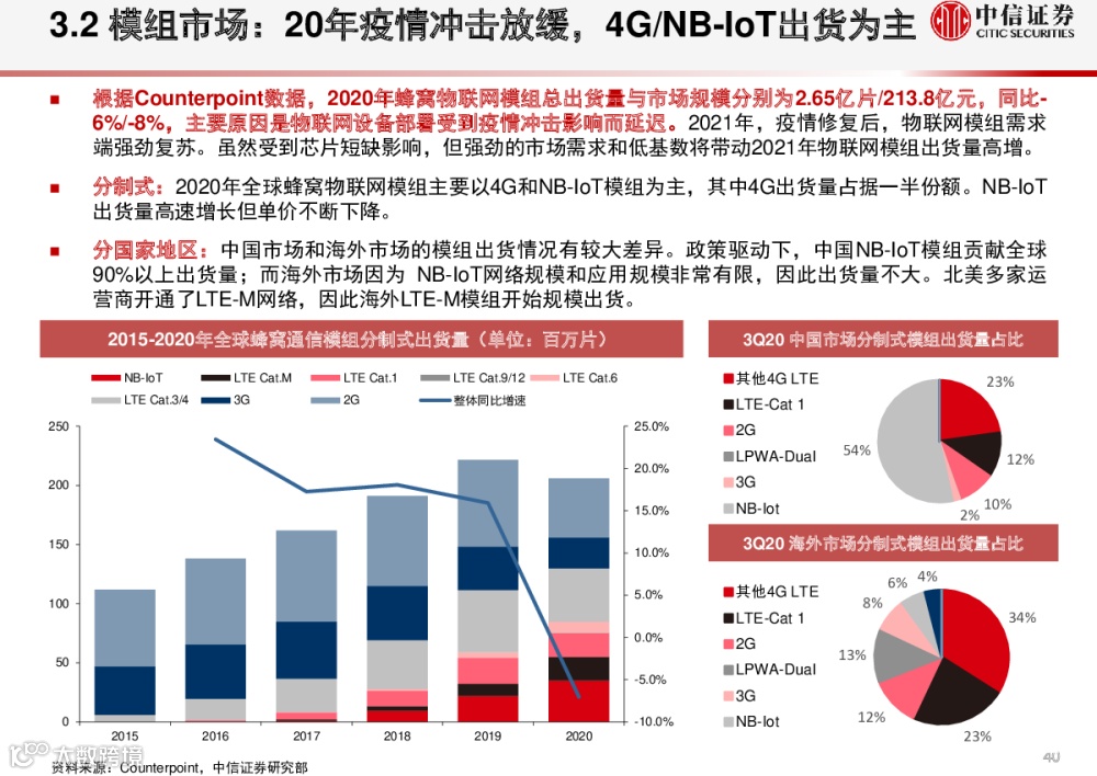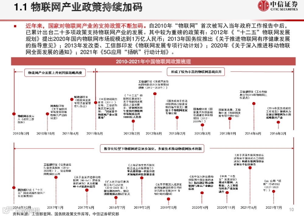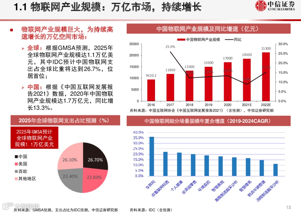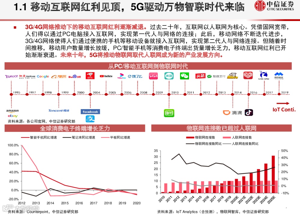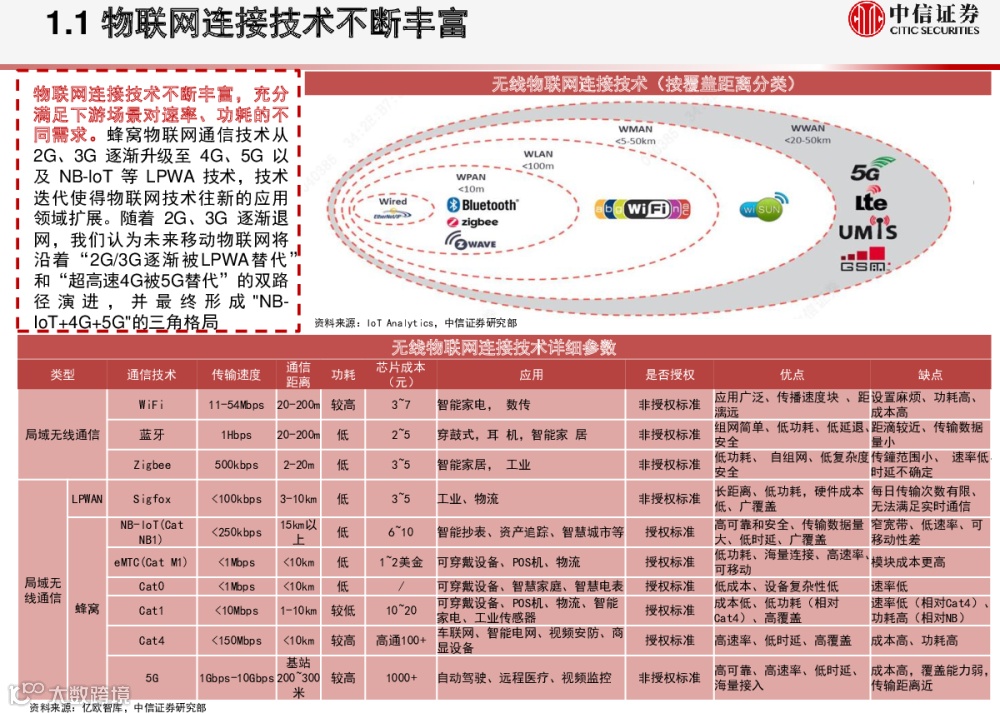 本文整理自中信证券深度物联网分析研究报告《万物智联,数通未来》,9月份新鲜出炉,数据最新。