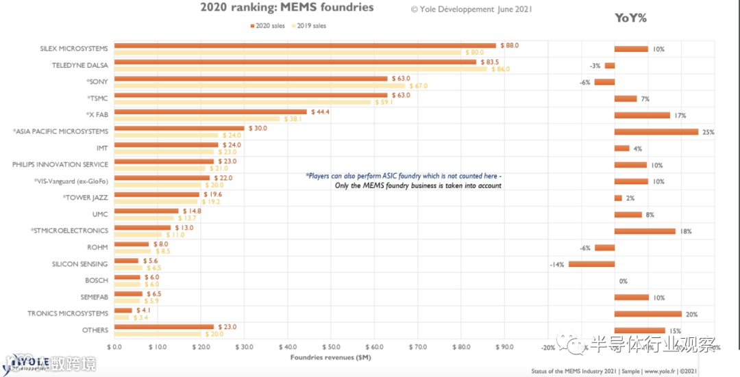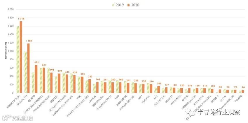 ●博世、ST、TDK在消费和汽车领域都有业务的企业由于消费MEMS业务2020年下半期的需求恢复,抵消了汽车潜在的负面影响。