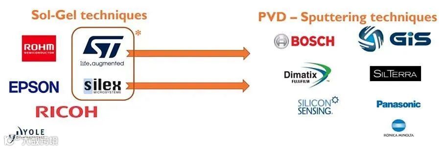 制造工艺方面,压电MEMS沉积技术正迎来“黄金时代”,压电MEMS系列产品包括传感器和执行器,如喷墨打印头、BAW、麦克风、微型扬声器、光学MEMS、MEMS自动对焦等。行业压电MEMS制造的经验正在增加,在PVD(物理气相沉积)行业的一些变化中,溅射技术已成为首选的沉积技术。不少厂商都有自主研发的溶胶-凝胶法和溅射技术。