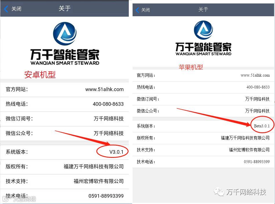 安卓用户:结束当前APP的运行,再次启动万千智能管家,在弹出的升级提示窗口点击“立即更新”,按提示完成新版更新即可。如果您的机型没有弹出升级提示窗口,请到我司公众号平台(公众号名称:万千网络科技)手动升级下载。