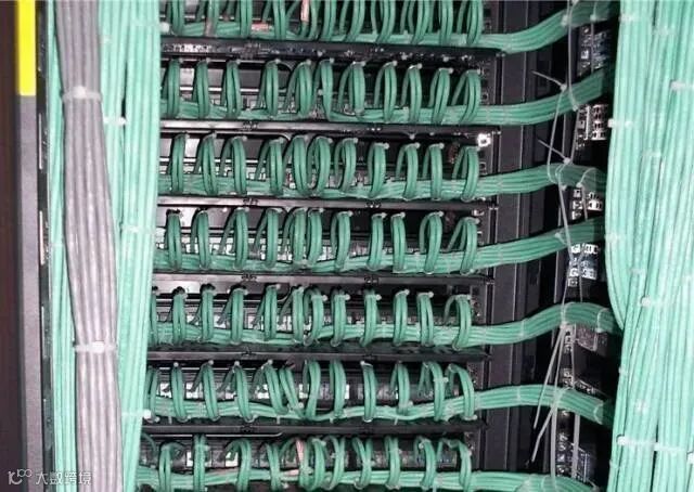 下面就是开始打配线架这一环节了,由于上面的工作做完了以后线缆已经非常明确了,把线缆甩到机柜的外边开始放置在一张工作台上三人一组开始进行压线的工作。按照事先安排好的位置进行压线就不容易出错了。压线的具体工艺步骤在这里不再赘述。