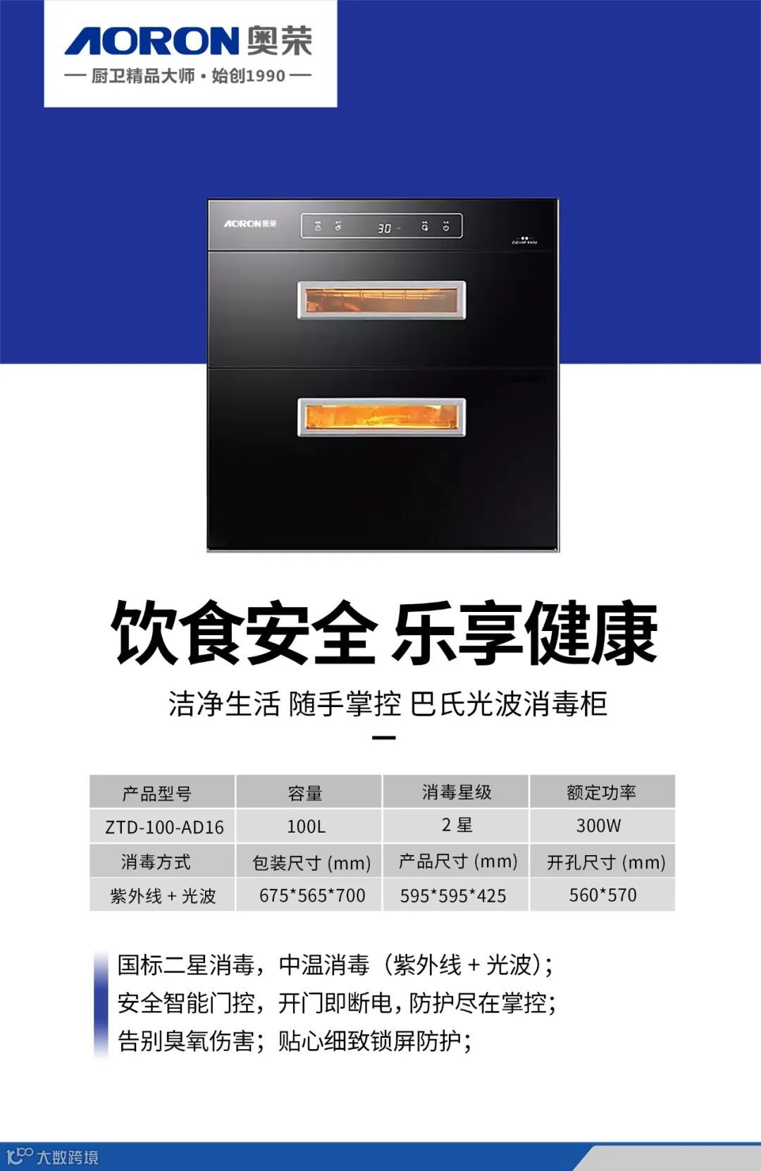 产品特点--容量:100L,消毒等级:2星级,紫外线+光波消毒,洁净生活,随手掌控!