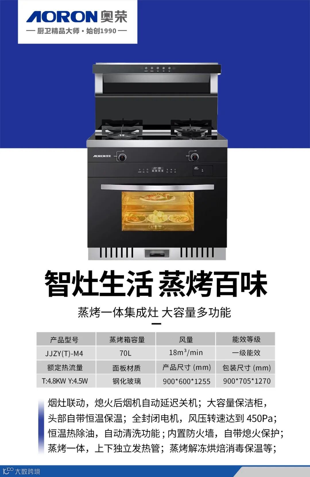 产品特点--集成烟机、灶具、蒸烤一体;风量:18m³/min,热流量:电磁炉:4.8KW Y:4.5KW 蒸烤箱容量:70L ,能蒸善烤,轻松搞定一桌美食!“烟灶联动”功能,打开灶具,烟机即会同步感应,一并开启,保卫厨房洁净,守护家人健康!
