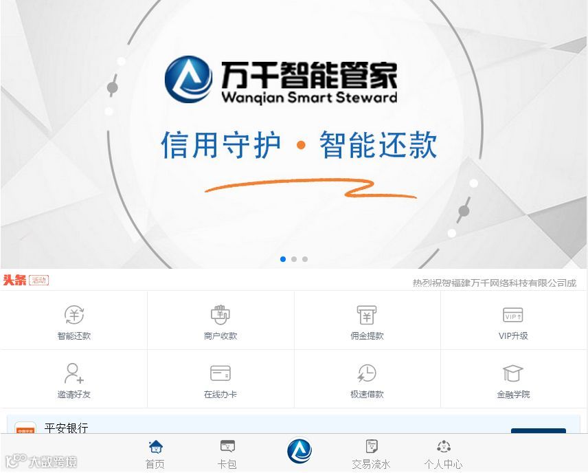 万千智能管家使用扁平化设计, 首页按钮集成了用户常用的还款、收款、提现功能,使用起来非常简单。即使是新手,从下载、安装、制定计划到绑卡消费,最多只要2分钟即可轻松完成。