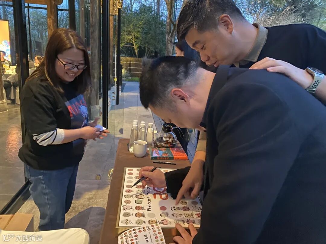 晚宴即将开始,宾客陆续到达,入座进场前,每一位都在入场签到处,留下了生动可爱的个人卡通头像。
