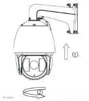 确认支架上的两颗锁紧螺钉处于非锁紧状态(锁紧螺钉没有在内槽内出现),将球机送入支架内槽,并向左(或者向右)旋转一定角度至牢固。