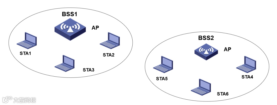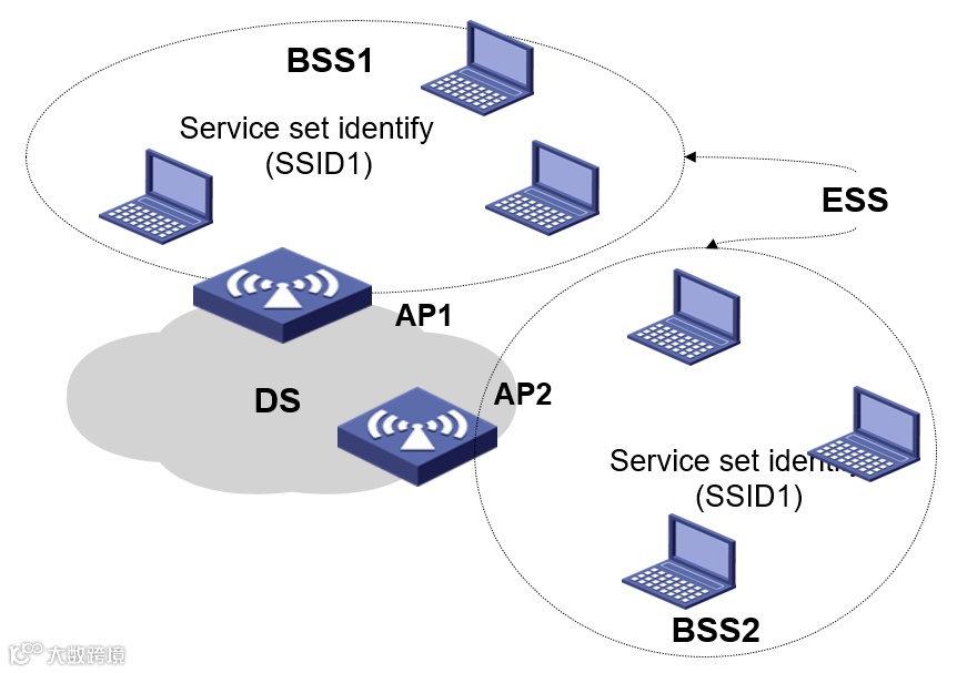 BSS指的是一台无线路由器释放的某个SSID的覆盖范围。图中涉及到的名词: