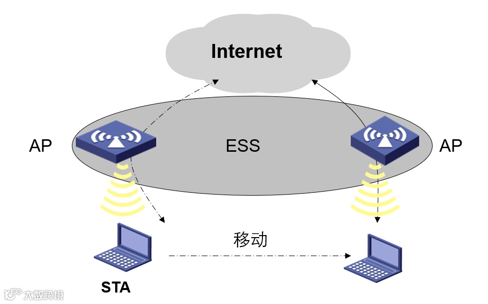 所以,多个AP释放出相同SSID所共同覆盖的范围即为ESS。