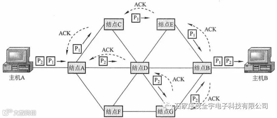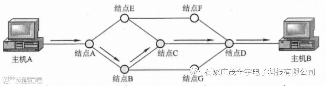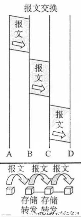 报文交换网络,将数据加上地址等信息,进行转发,每个报文自行选择路线