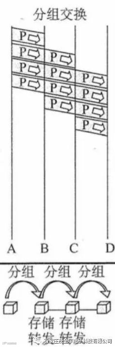 分组交换网络,将数据分成较小的数据块,类似报文交换,只是将报文分成更小的多个分组
