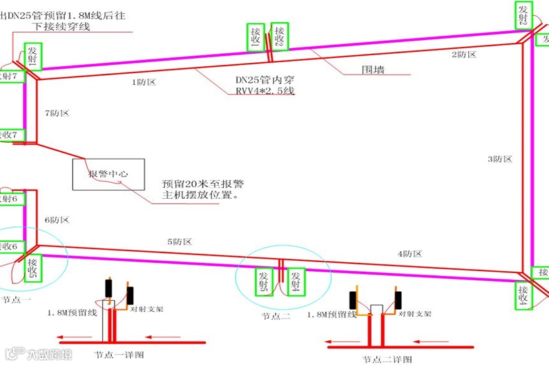 红外对射的接线图可以参考“周界报警系统(红外对射)接线图”。