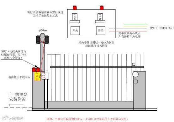 1.线路绝对不能明敷,必须穿管暗设,这是红外对射工作安全性的最起码的要求。