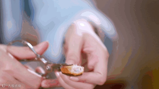 将蟹钳分成三段,前两段都可将蟹壳直接剪开,用勺舀出肉。最后的那只钳子,技巧是剪开两边,然后用手往相反的方向掰两只钳脚,钳壳就完整地分开了。