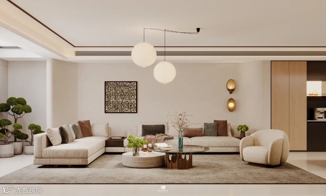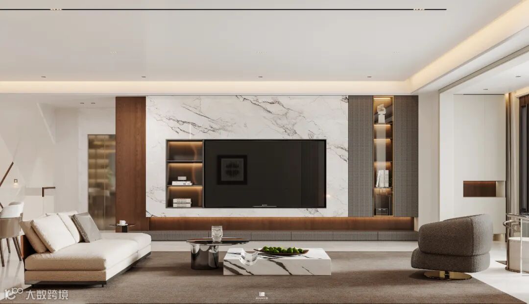 踏入这个客厅,仿若邂逅一场静谧的美学之约,在设计上,客厅摒弃繁复的装饰,以简洁的线条、高级的质感和精致的细节,勾勒出空间的奢华底蕴。