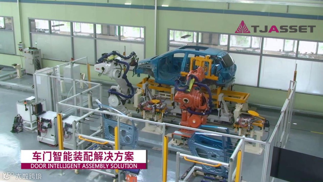该装配系统由视觉引导系统,柔性机器人抓具,自动扳手(带扭矩监控系统),最佳视觉引导车身断差面差匹配系统,AGV小车柔性智能输送系统,车身门盖安装MES(生产执行系统),大数据远程采集诊断等子系统构成,最大可以适用于年产能24万辆柔性自动化车身装配线;生产节拍51秒/车,最多支持4车种以上产品柔性混线生产,单条生产线上集成机器人数量20台以上,单条生产线上应用视觉系统和自动拧紧系统数量超过100套。