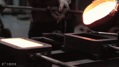 先将玻璃融化然后把滚烫玻璃液倒进模具
