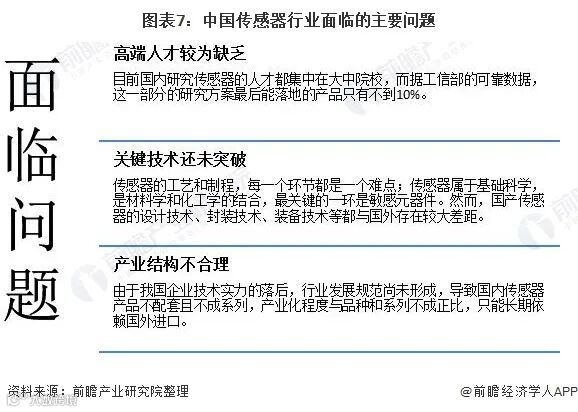 传感器的质量、价格、功能都是需要重点提高的方面。目前,我国传感器产业面临着高端人才较为缺乏、关键技术还未突破、产业结构不合理等问题。