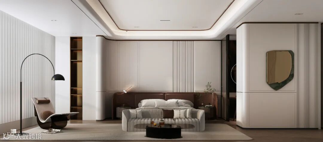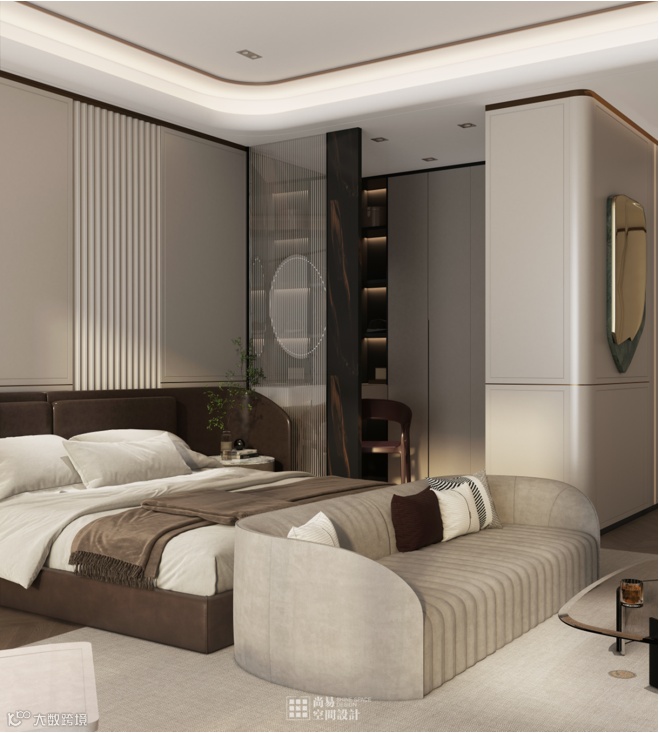 The design of the master bedroom suite is exquisite and luxurious.