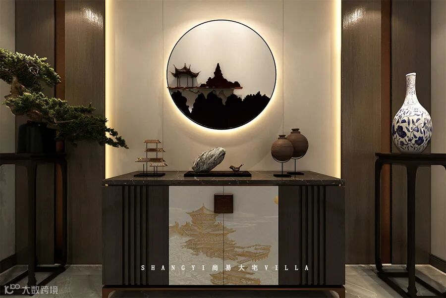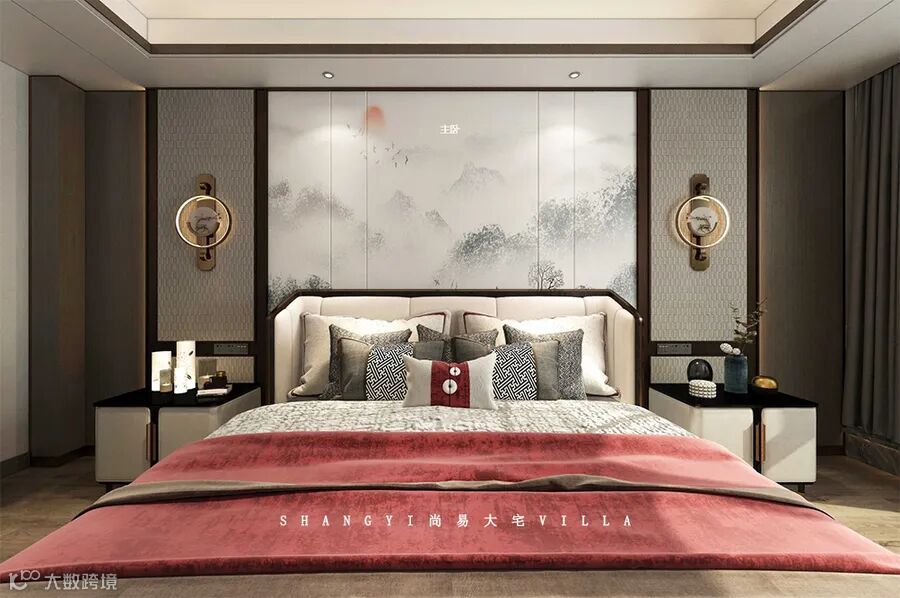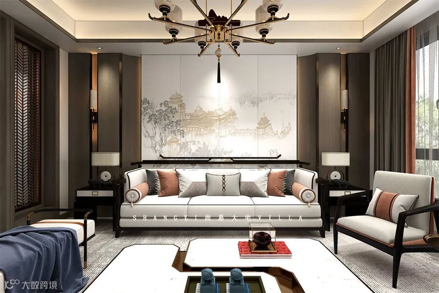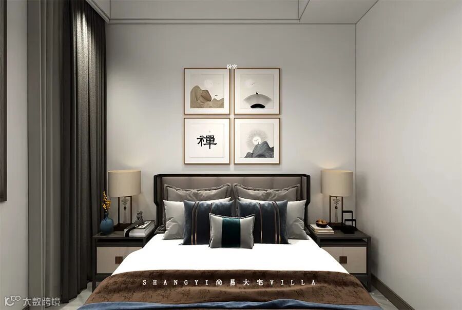 诗意十足的国画与中式家具相互呼应,