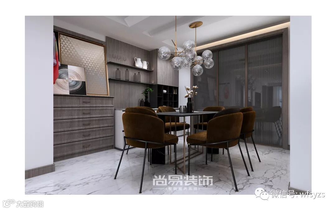 原本餐厅上方的梁设计师用对称的方式进行了“隐藏”当成一个吊顶造型命名、餐厅增加了一组吊灯、两组灯带使餐厅更具“美味”