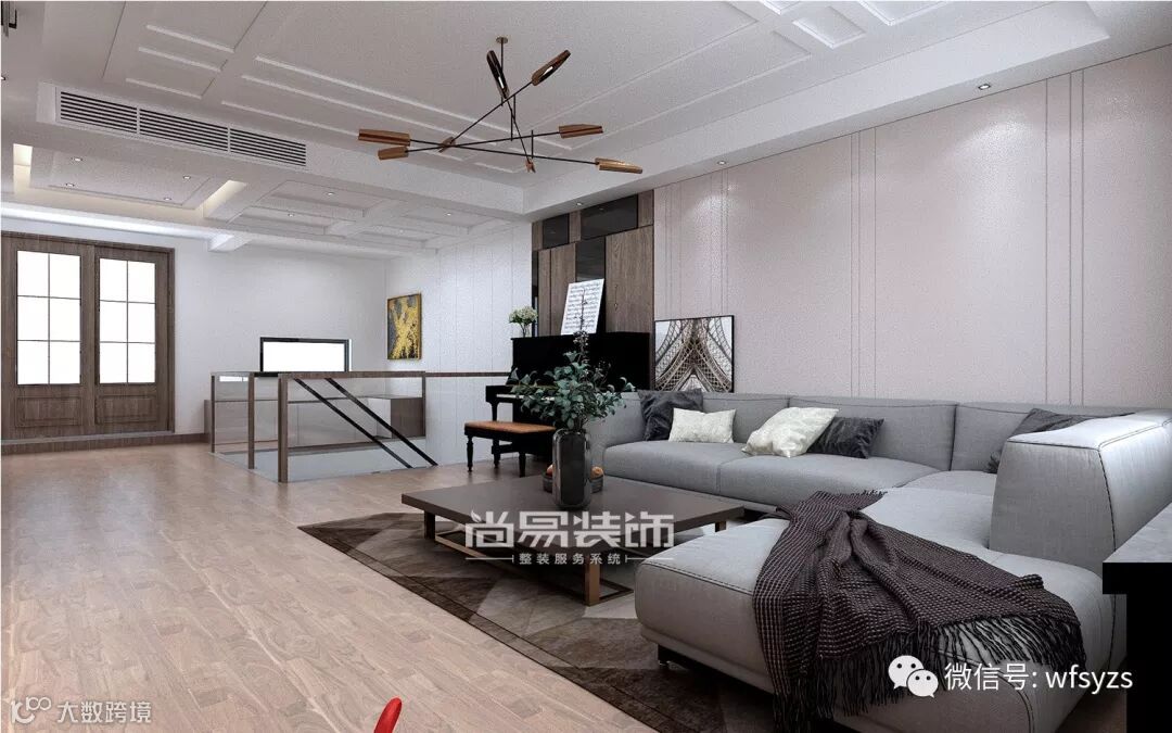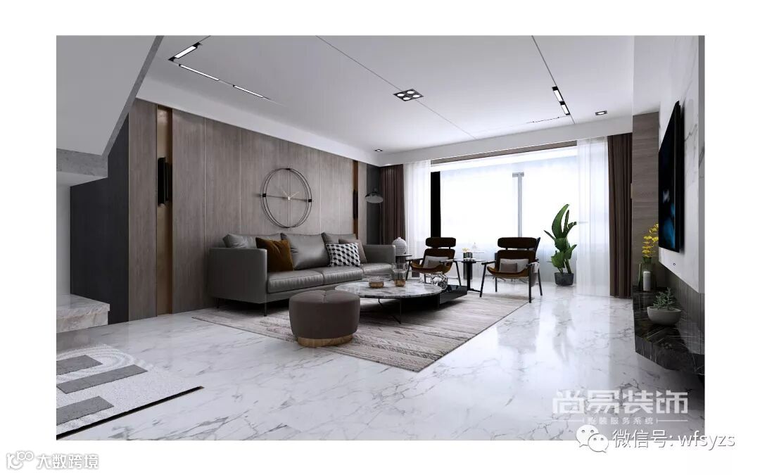 *客厅整个空间采用无主灯设计、更加简洁大方、简单的线条灯、顶面抽缝的方式增添了些许规则在其中