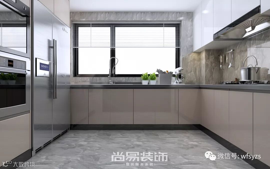 厨房充分从生活角度出发、大量的收纳、流水线似的操作台面、为业主更好的提供一个烹饪环境