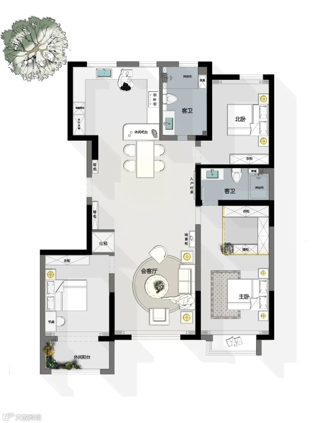 -餐厅、西厨、岛台呈现为