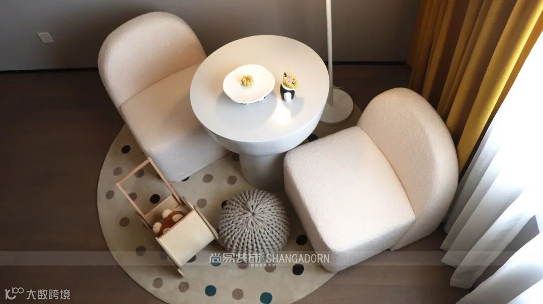 ▲客厅沙发异于常规的造型款式有效拉升空间层次,实现艺术与功能的平衡。无主灯设计照明加持下,空间更显简洁干练。