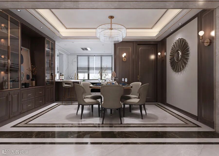 皮质餐椅搭配金边餐桌