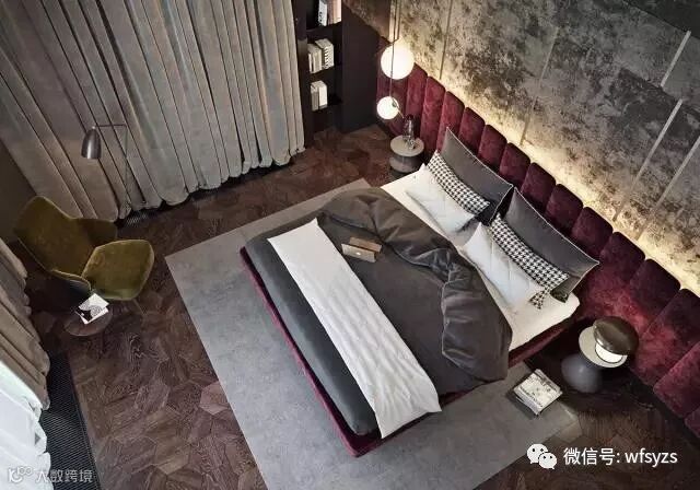 这是适合于较大卧室的摆放方法,可以根据床头后面墙角空地的大小在拜访一个储物柜。