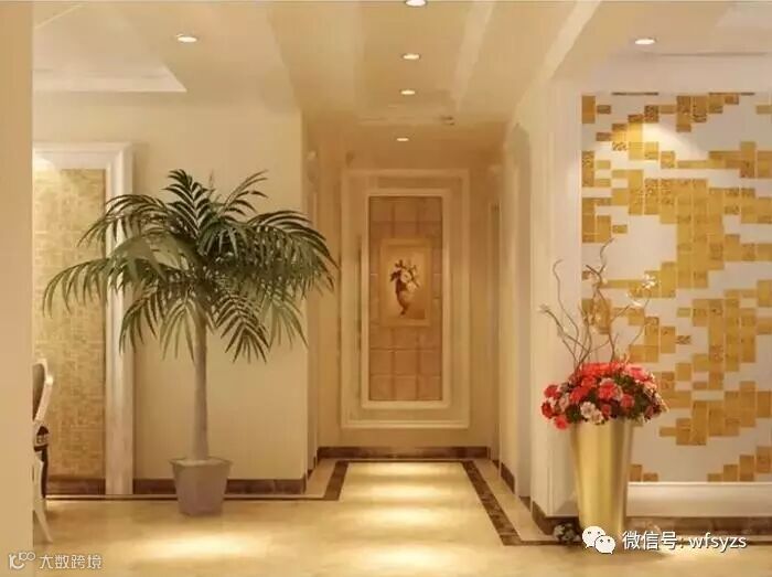 浅黄的欧式墙纸搭配简约的石膏线