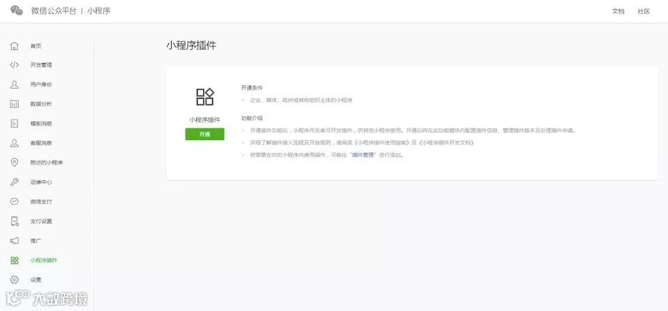 小程序开发者无需重新注册帐号,简单几步就能直接在小程序管理后台开通插件功能——