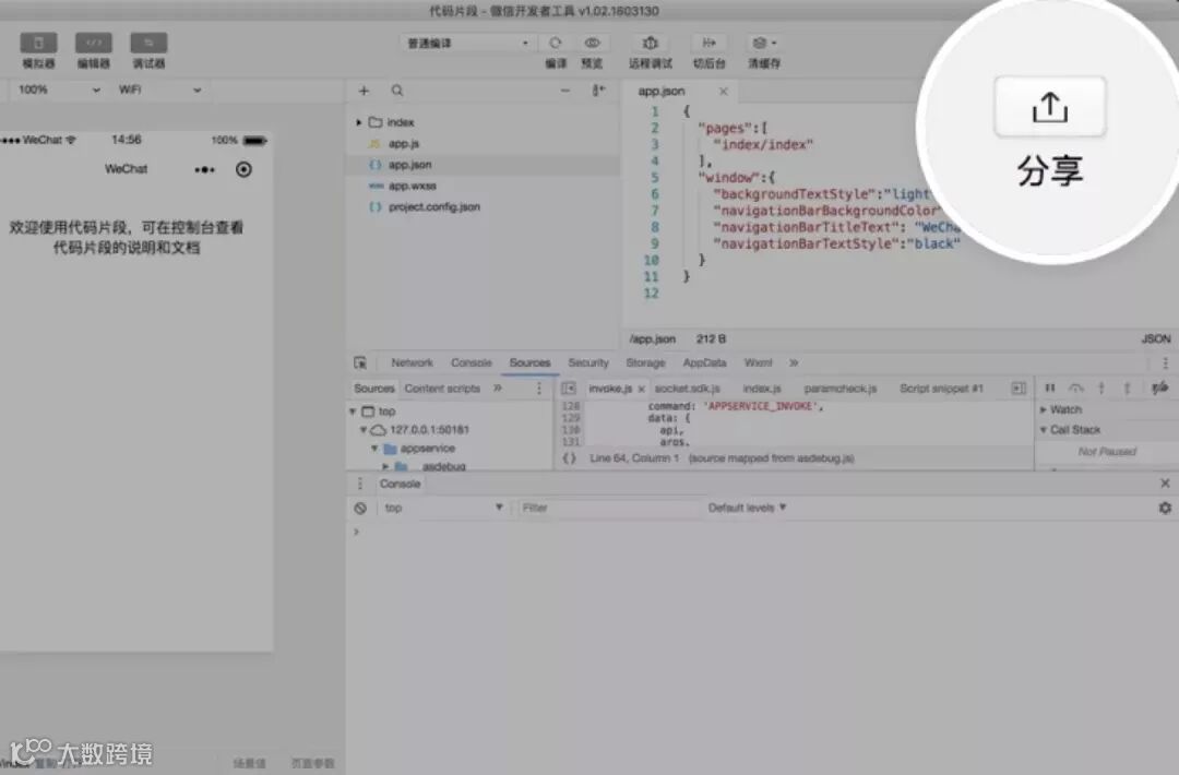 此外,开发者工具新增了“代码片段”功能。代码片段是一种可分享的小程序项目,开发者可以生成项目链接让他人在开发者工具中导入和运行小程序代码,便于开发者之间分享小程序开发经验、学习小程序教程、反馈 bug 等。