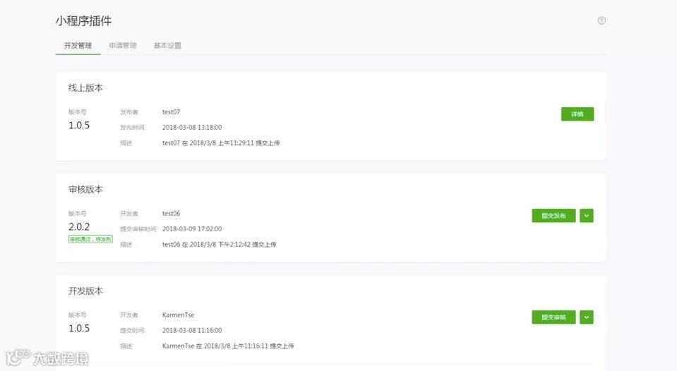 “申请”通过后,小程序开发者就能使用该插件了。详见《小程序插件开发文档》