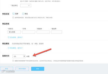 又是非常简单的操作,商家首先需要登录微播后台,然后再需要设置备餐时间的商品处,设置备餐时间,最大可设置24小时;保存设置并记得将修改推送至小程序哦~(餐单推送)