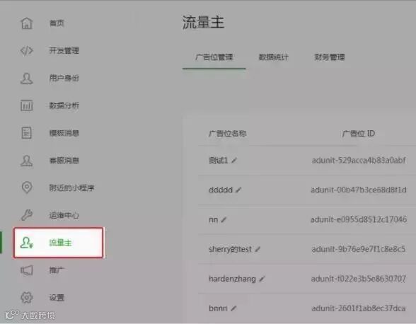 想要开通小程序流量主的商家只需要进入微信公众平台小程序后台,点击左侧"流量主",满足开通门槛的小程序的开发者直接点击"开通"即可创建相应的广告位。