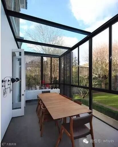 这种类型的阳光房一般是包木或纯木结构架,外加多层阳光板和加胶中空钢化玻璃,实木或铝包木门窗。如果选用塑钢窗在密封效果上会比其他门窗更好些。这种类型的阳光房可加上专用通风装置及遮阳系统,使其功用性更好,后期使用起来会更便捷更实用。