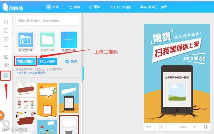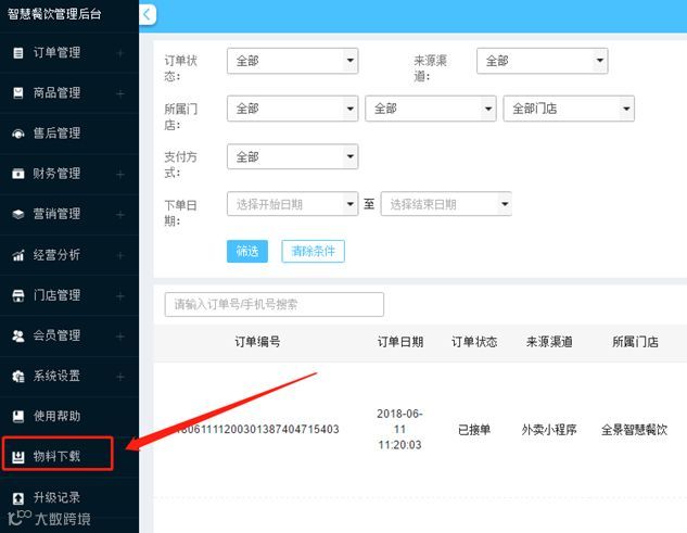 模板的入口有两个,一个是商户端的后台,一个是门店端的后台。不管是登录哪个后台,都能进入物料下载的界面。
