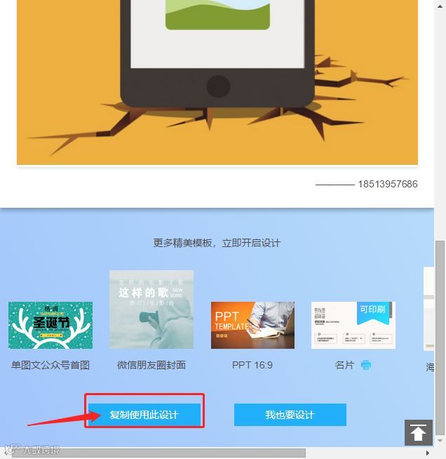 选择您要修改的物料模板,点击修改物料链接,拉到最下方选择复制使用此设计;