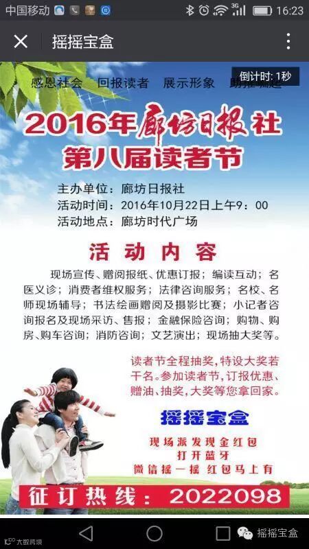 “十一欢乐节”后,摇摇宝盒再接再厉,拿下十月下旬于廊坊时代广场举办的2016年廊坊日报社的第八届读者节,在抽奖环节大放异彩,不光吸引了普通读者的注意,还引起了商家读者的追捧!