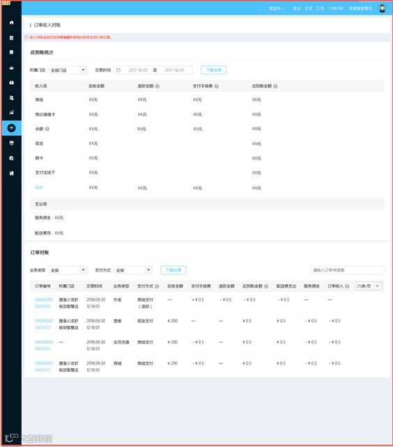 美食广场模式下,微播智慧餐饮小程序可根据商户的营业模式,采取集中收款并分账的方式或独立收款的模式,满足不同的美食广场租售模式。在微播智慧餐饮小程序商户和档口后台有明确的财务收入明细,可供商户进行对账。