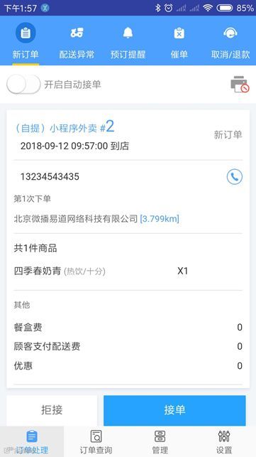 同时,外卖模式下,档口也可使用该方式进行接单,并呼叫配送。