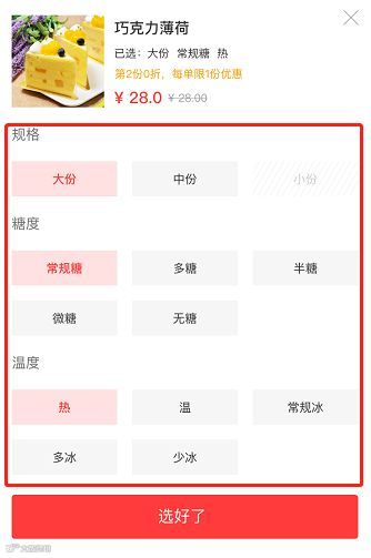 微播外卖小程序,很早之前就支持菜品的多规格设置了,清晰的规格选择让菜品的展示更加清晰明了,也让用户有了更多的可选择性。