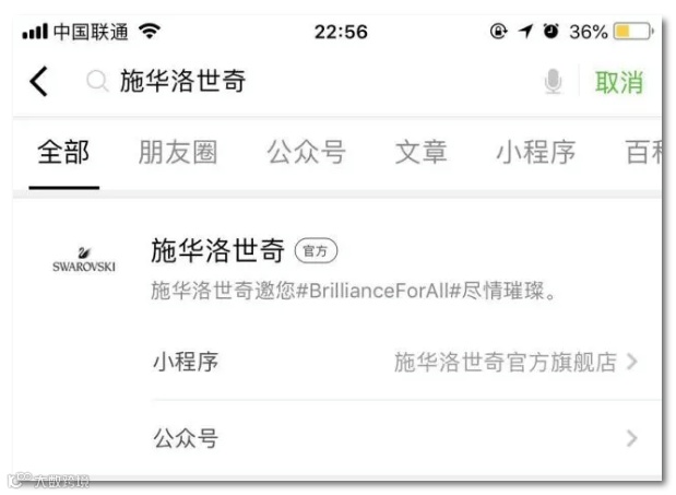 品牌官方区由品牌主页、品牌精品店、官方公众号等部分组成,是知名品牌向微信用户提供品牌资讯、产品及服务的官方渠道。比如施华洛世奇、westore、杰克琼斯、欧莱雅等品牌都有自己的品牌官方区。