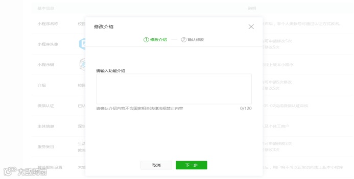 1、一个微信小程序最多关联5个服务类目,一个月内可申请修改3次。