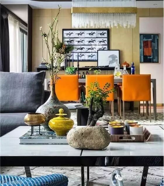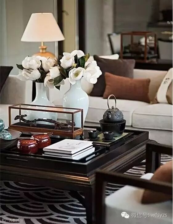 而新中式风格家居与花艺的结合,含蓄隽永,端庄丰华。在造型上,摆脱了传统符号化的堆砌,讲究的是东方绘画中的韵律美与现代设计风格结合,形成符合现代审美需求、极具东方美感的设计风格。在色彩上,采用的中性灰色彩,给人优雅温馨、自然脱俗的感觉。